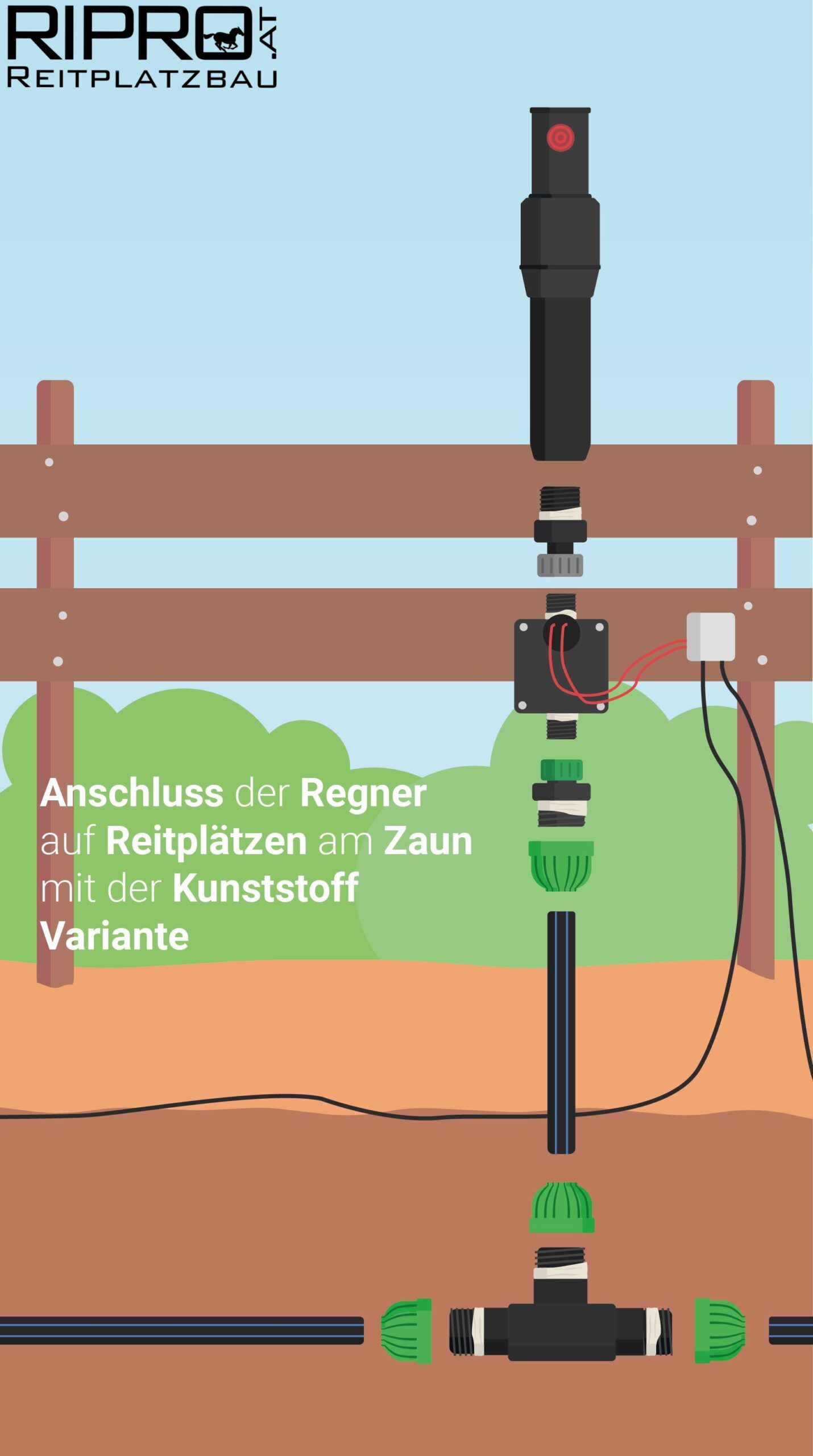 Die Reitplatzbewässerung Classic 60/30 m (inkludiert 8 Regner, elektr. Einzelsteuerung) eignet sich gut um den gesamten Reitplatz mit Leichtigkeit zu bewässern.